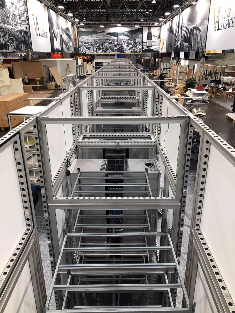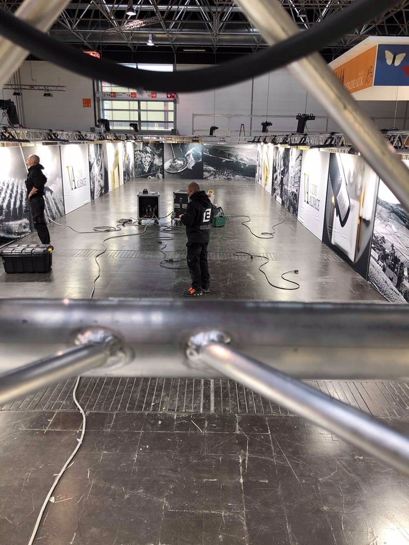 For our team, this meant setting up and assembling exhibition stands. This required 4 semi-trailers of material and a whole week of installation. We have two stands: one with 4 exhibitors and the other with 35.