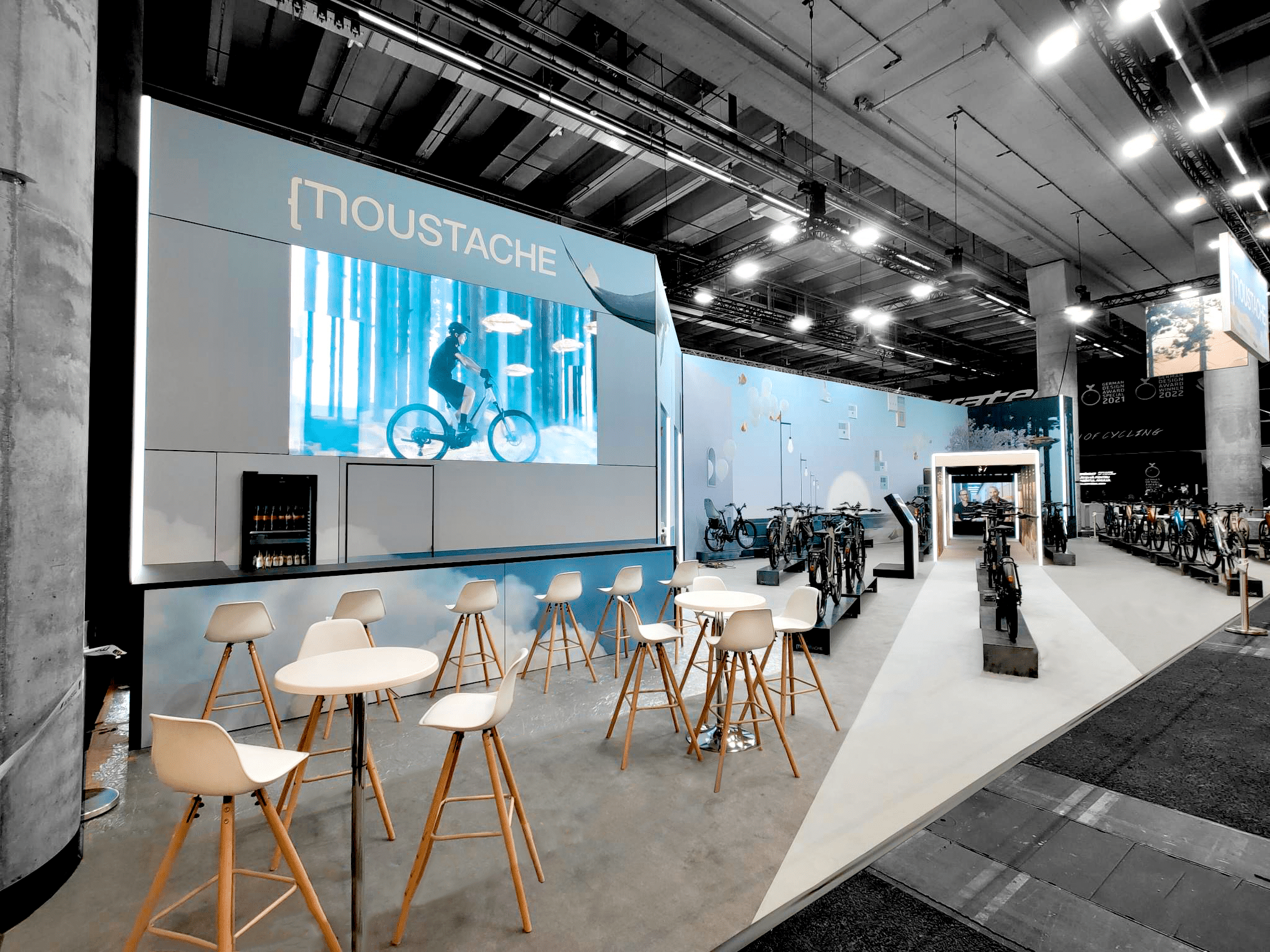 De plus, nous avons intégré des éléments de pointe à ce stand innovant : 10m² d’écran LED pitch ultra fin p2.5 pour une visualisation exceptionnelle, ainsi que 2 bornes tactiles personnalisées aux couleurs de Moustache.